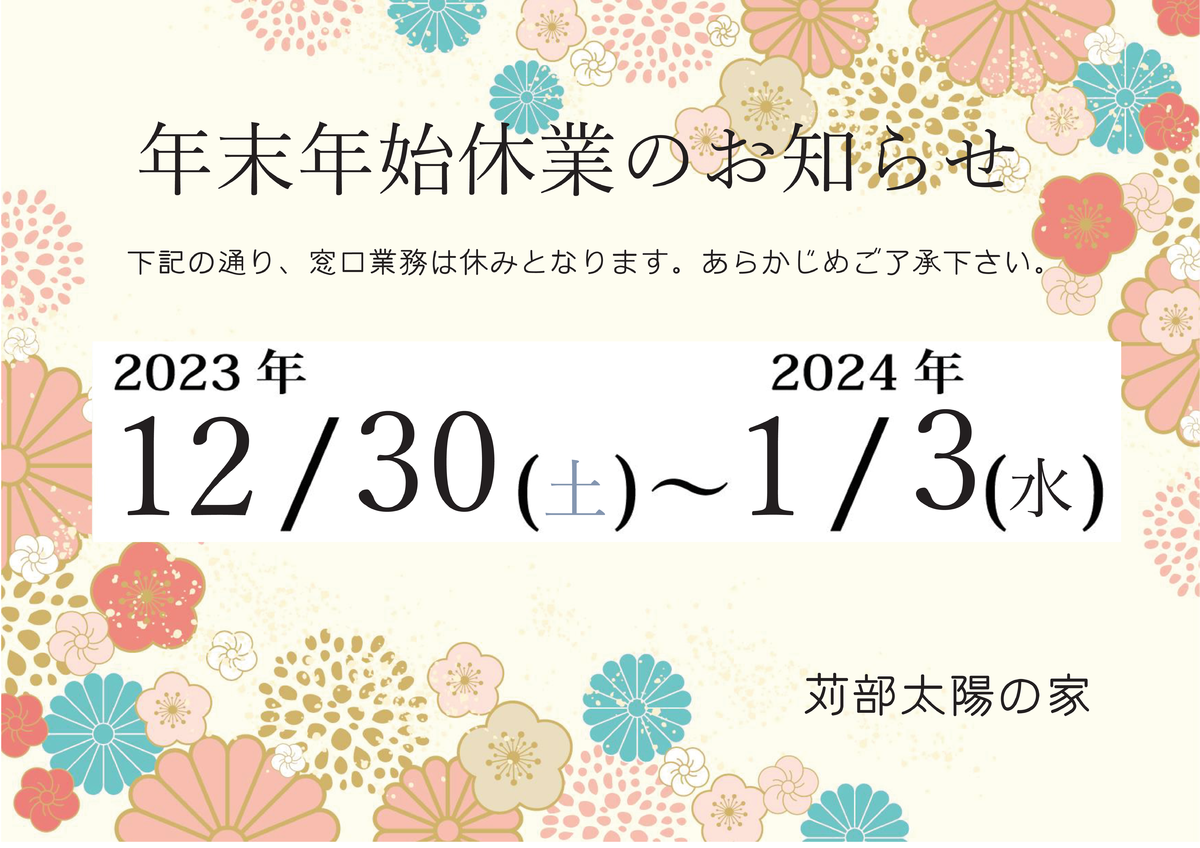 年末年始休業のお知らせ