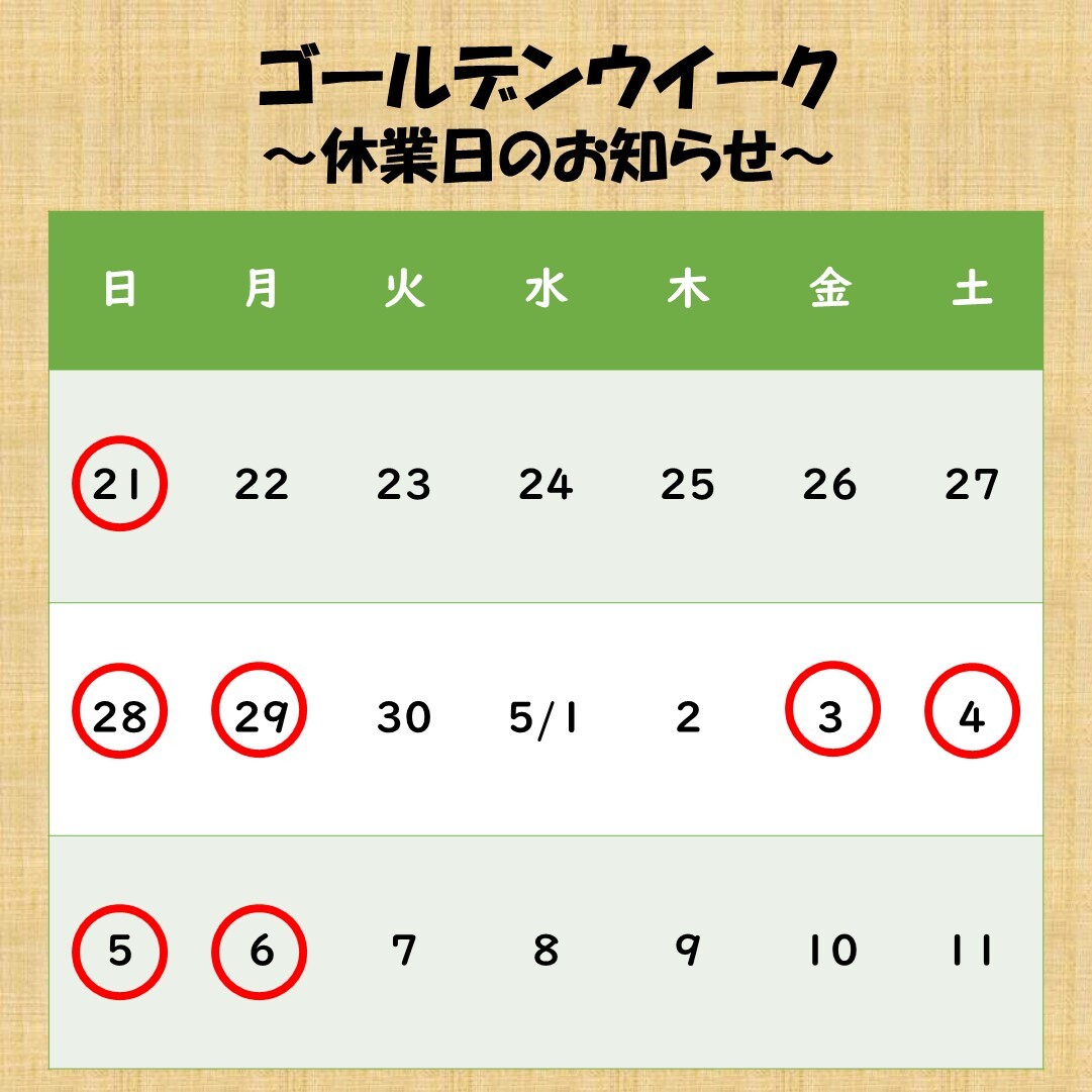 ゴールデンウィーク休業のお知らせ