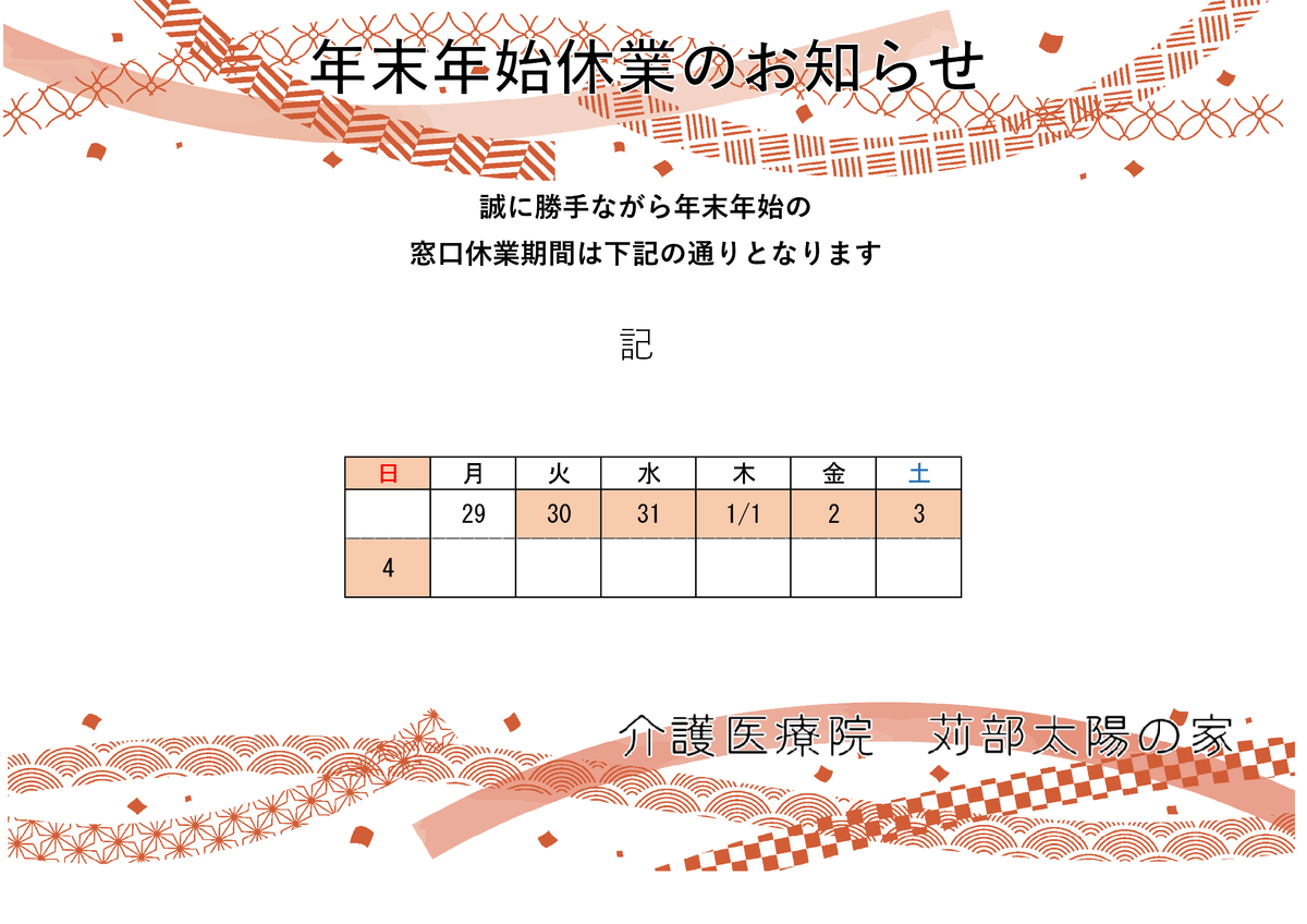 年末年始のお知らせ